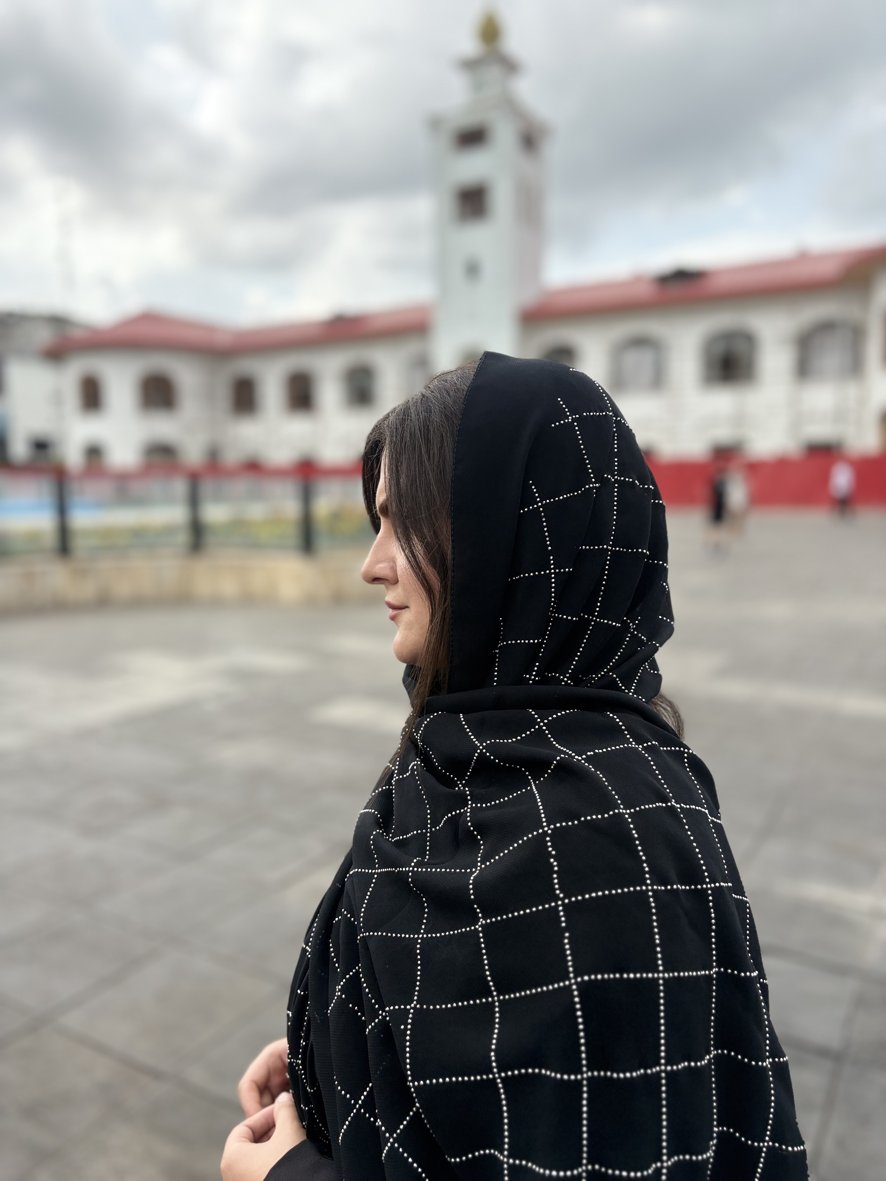 شال مشکی مجلسی نگین دار