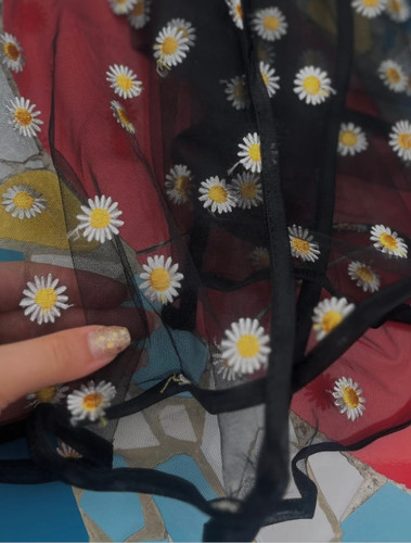 مینی اسکارف تور ی گلدوزی و حاشیه گان دوزی شده قواره 70 در 70 مشکی