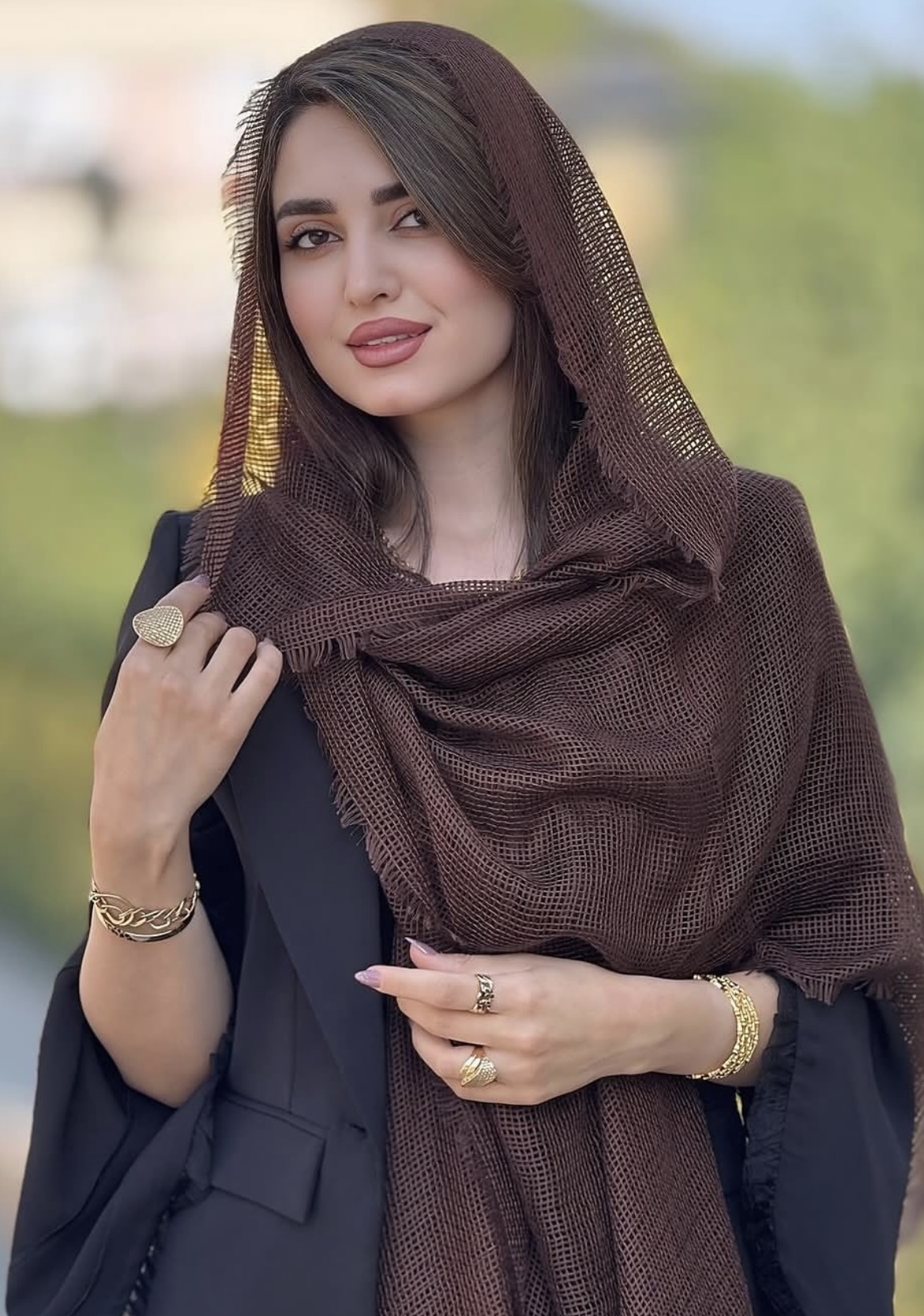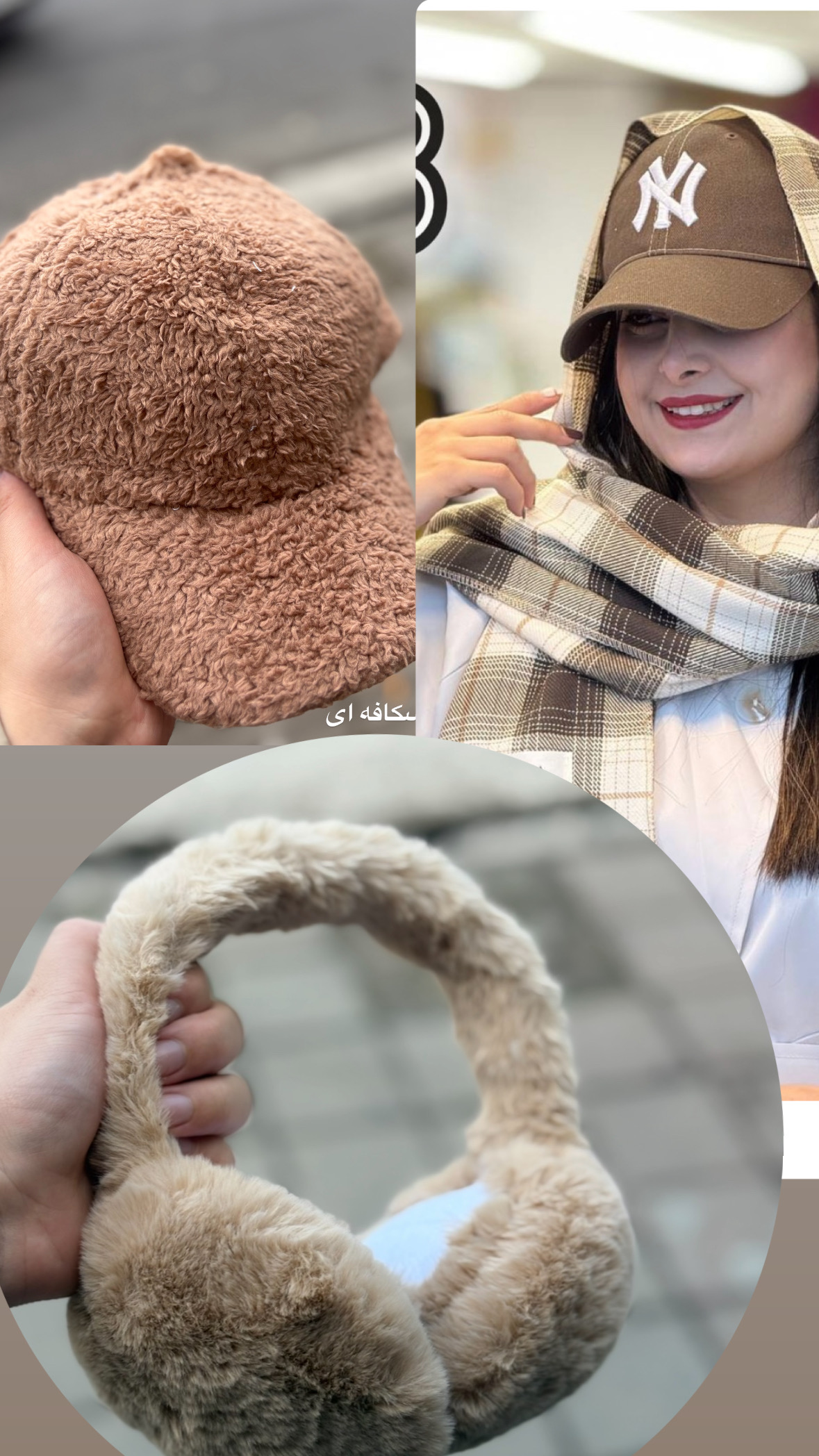 ست شال و کلاه گوشگیر نسکافه ای ولیزاده