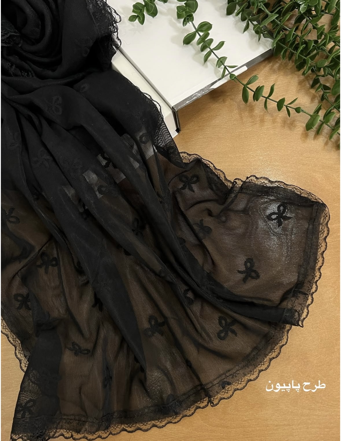 مینی اسکارف تور ی گلدوزی و حاشیه گان دوزی شده قواره 70 در 70 مشکی